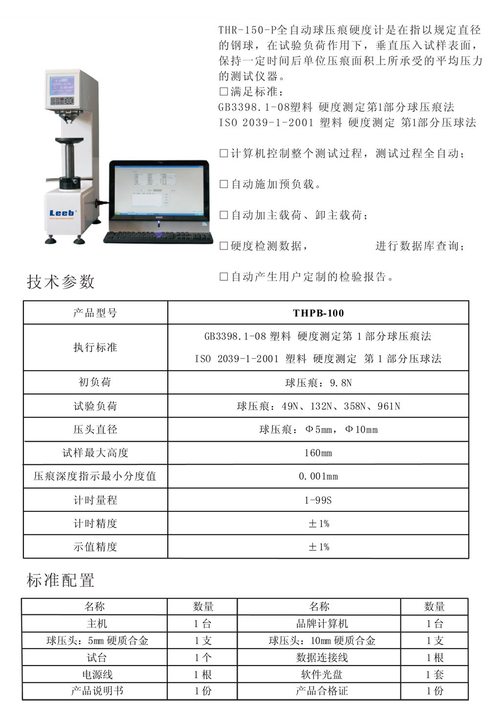 ● 滿足標(biāo)準(zhǔn):GB3398.1-08塑料 硬度測(cè)定第1部分球壓痕法,ISO 2039-1-2001塑料 硬度測(cè)定第1部分壓球法;
