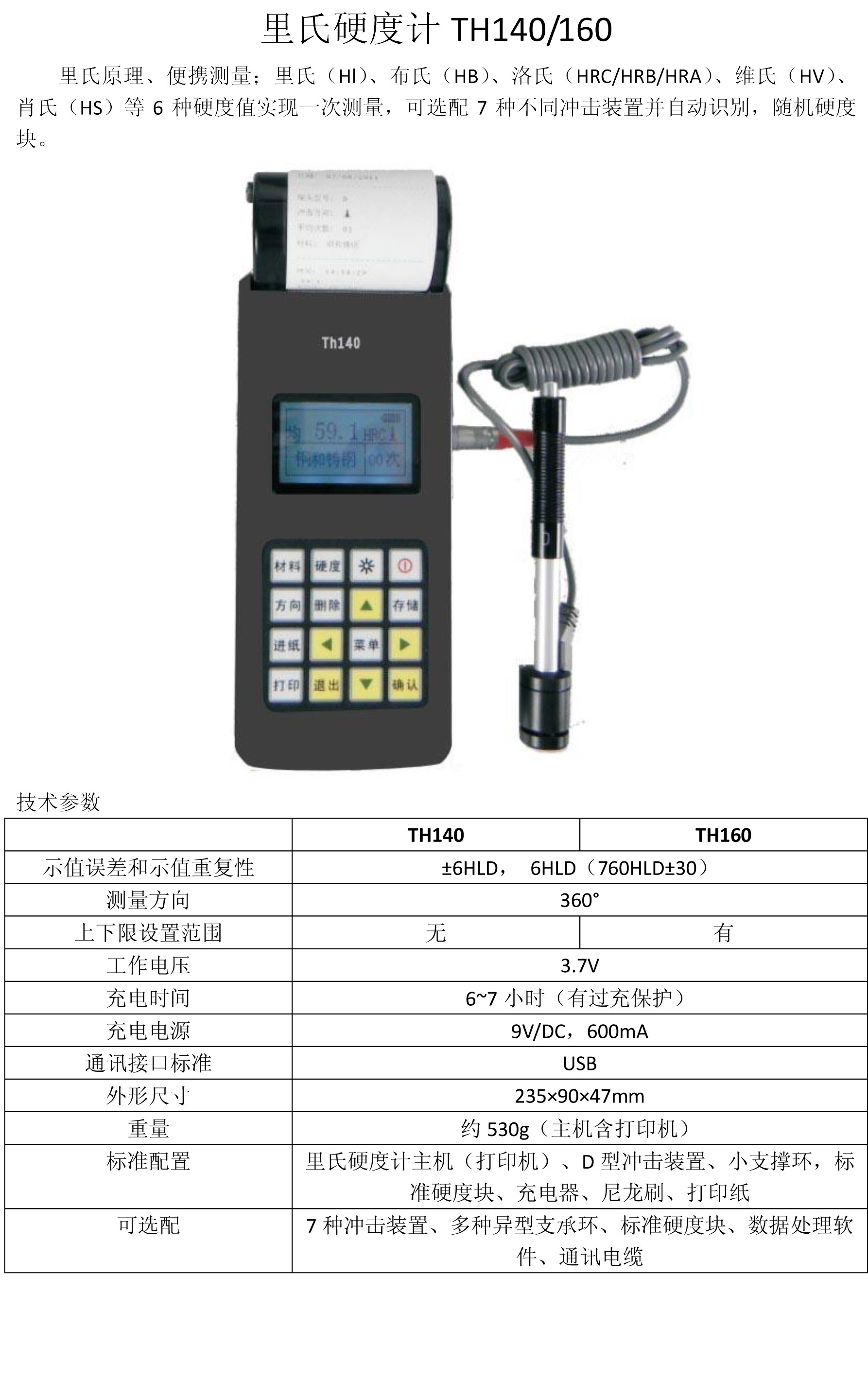 • leeb里博便攜式硬度計(jì)TH140手持式金屬里氏硬度計(jì)自帶打印機(jī)內(nèi)置鋰電池