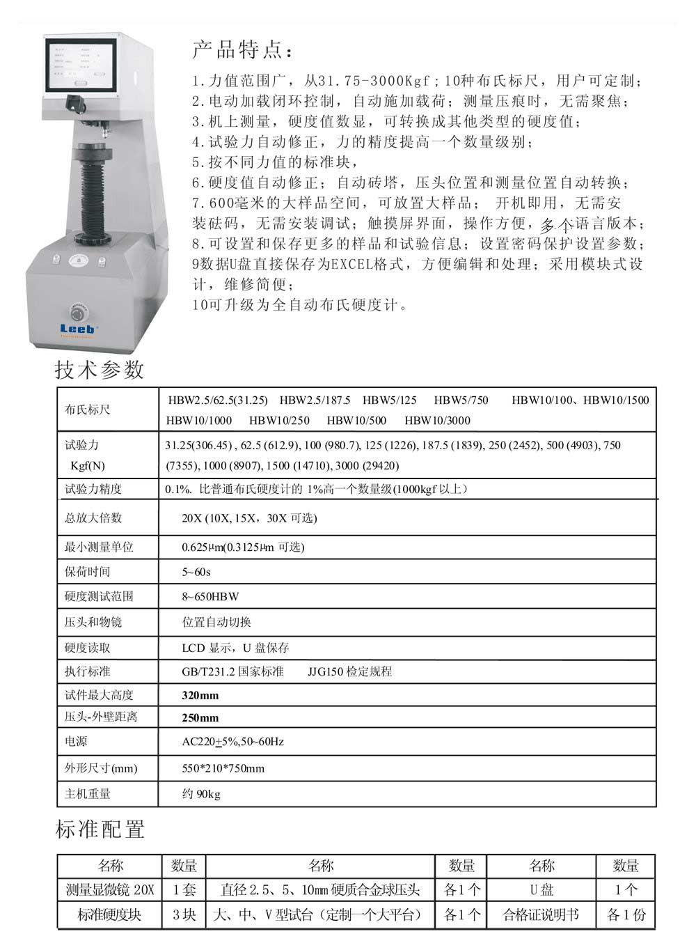 ● 力值大,從31.75-3000kgf,10種布氏標(biāo)尺,用戶可定制;