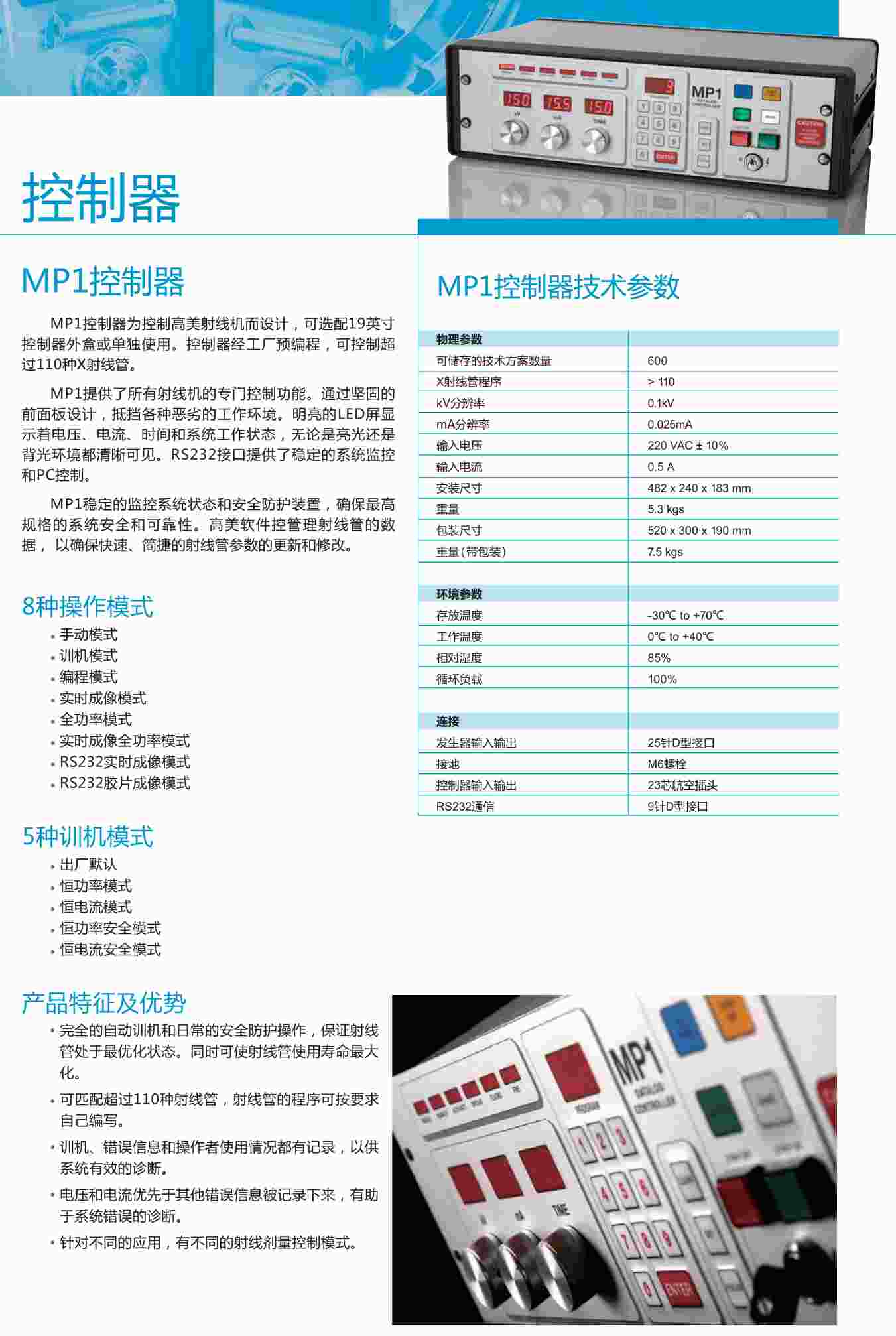 MP1控制器為控制高美射線機而設(shè)計,可選配19英寸控制器外盒或單獨使用。控制器經(jīng)工廠預編程,可控制超過110種X射線管。