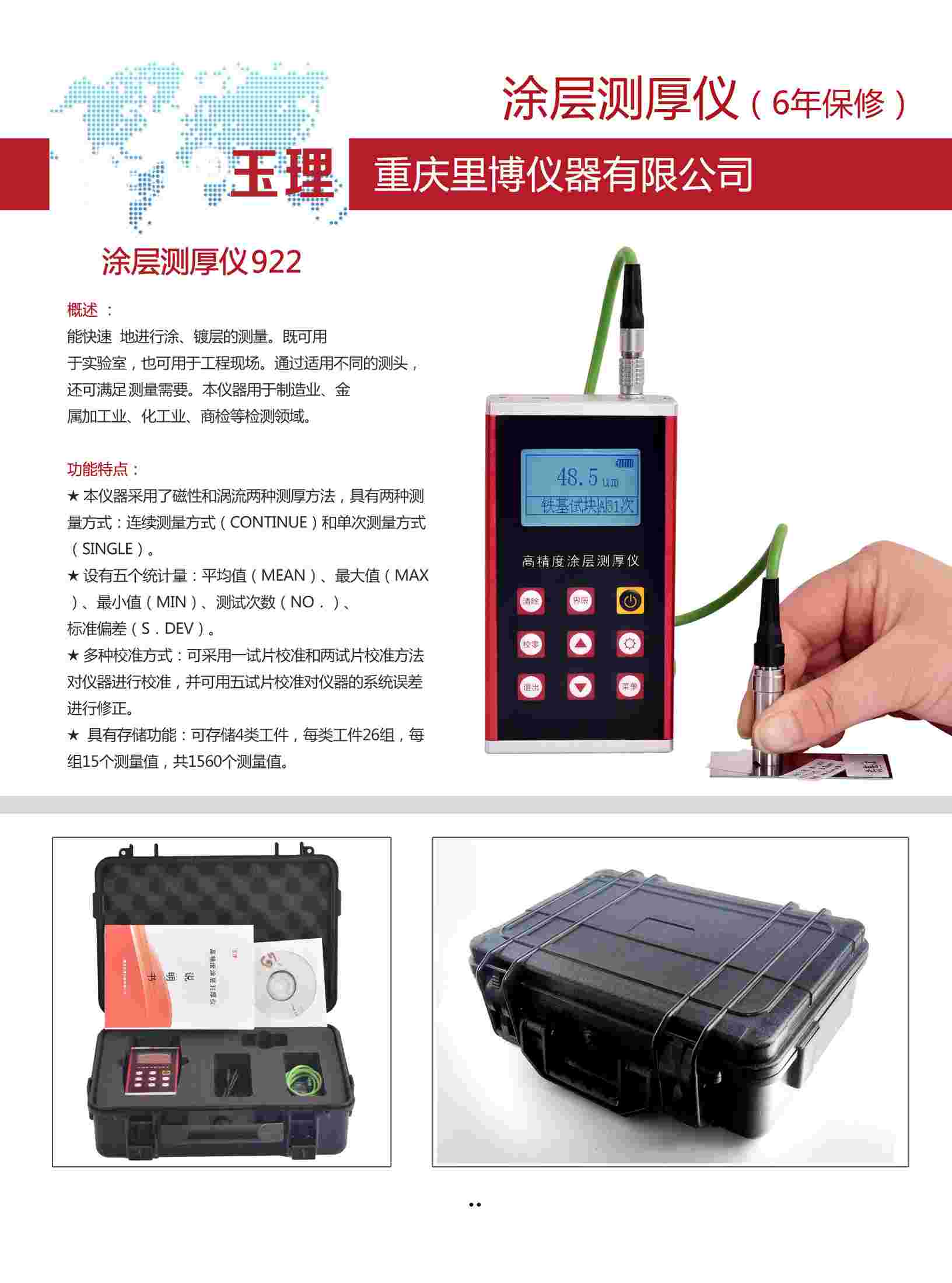 能進(jìn)行涂、鍍層的測(cè)量。既可用于實(shí)驗(yàn)室,也可用于工程現(xiàn)場(chǎng)。通過(guò)適用不同的測(cè)頭,還可滿足多種測(cè)量需要。本儀器廣泛地用于制造業(yè)、金屬加工業(yè)、化工業(yè)、商檢等檢測(cè)領(lǐng)域。本儀器符合以下標(biāo)準(zhǔn):GB/T 4956-1985磁性金屬基體上非磁性覆蓋層厚度測(cè)量,磁性方法;GB/T 4957-1985非磁性金屬基體上非導(dǎo)電覆蓋層厚度測(cè)量,渦流方法。JB/T 8393-1996磁性和渦流式覆層厚度測(cè)量?jī)xJJG 889-95《磁阻法測(cè)厚儀》 JJG818-93《電渦流式測(cè)厚儀》