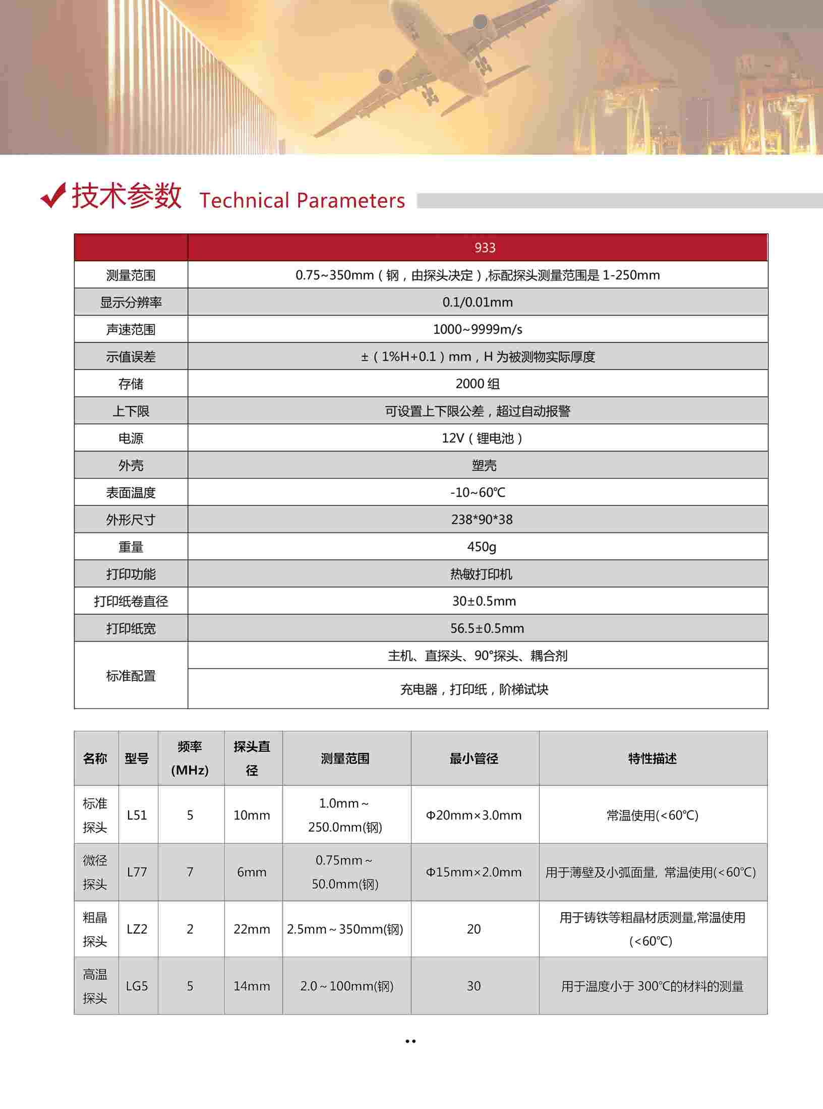 0.75~350mm(鋼,由探頭決定),標配探頭測量范圍是1-250mm |