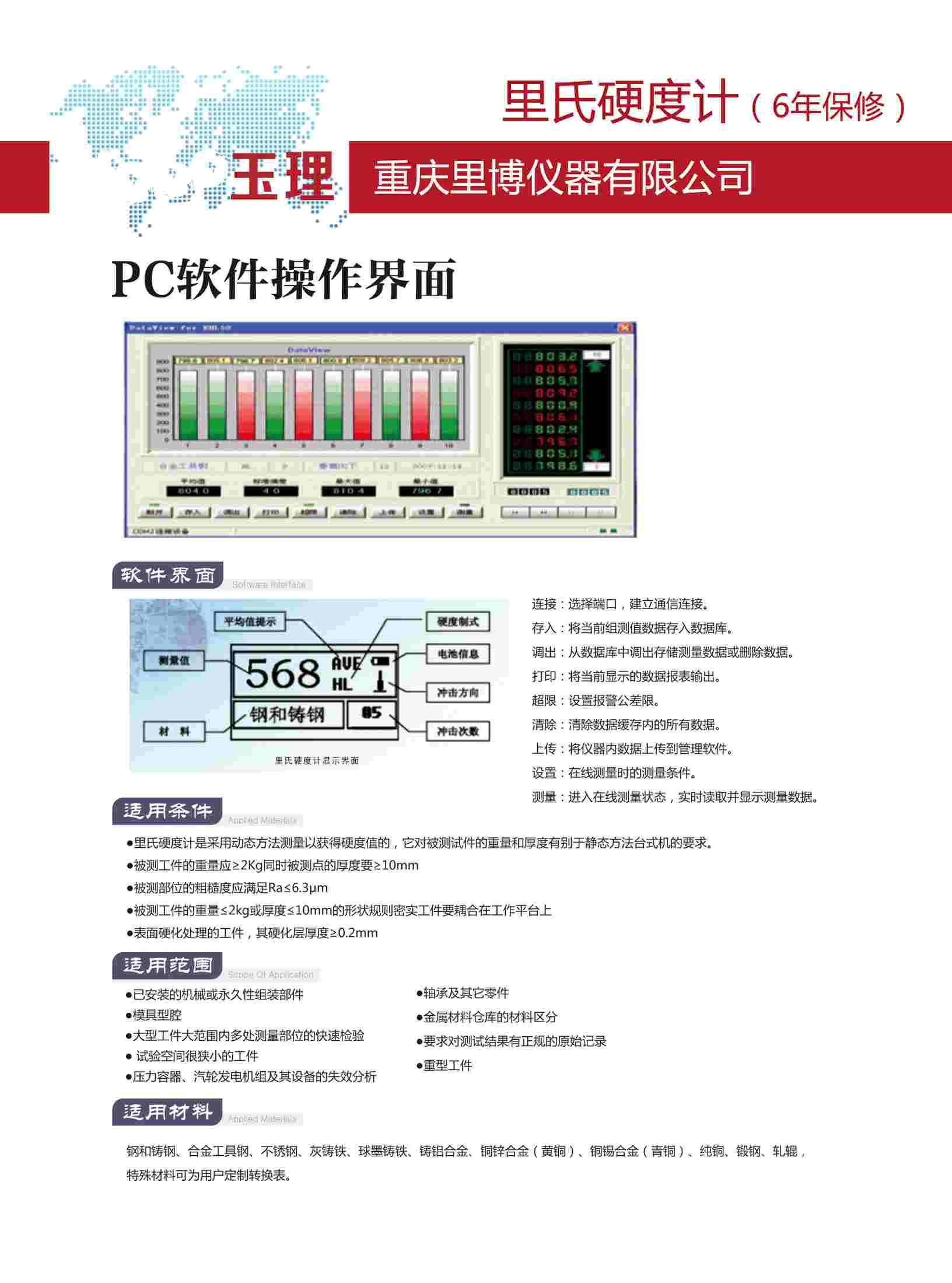 注:使用里氏硬度計測量時需被測工件適合測試條件,三方面的要求:工件重量不小于2KG,最小厚度不小于10mm,表面粗糙度不大于1.6um。在不適合上述條件時須穩(wěn)固支撐或密實耦合!