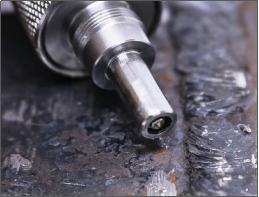 該儀器采用超聲接觸阻抗法(UCI),符合ASTM A1038標(biāo)準(zhǔn),是一種非直接測(cè)量壓痕的動(dòng)態(tài)壓入法。端部鑲有特定壓頭(如金剛石壓頭)的振動(dòng)桿受到激勵(lì)做縱向超聲振動(dòng),用一定的試驗(yàn)力將壓頭壓入試驗(yàn)表面,振動(dòng)桿的縱向振動(dòng)將受到阻抗,諧振頻率發(fā)生變化,從而得出硬度值。這種硬度測(cè)量方法已經(jīng)在各國(guó)大范圍使用,并且已經(jīng)在工業(yè)領(lǐng)域使用了50多年。
