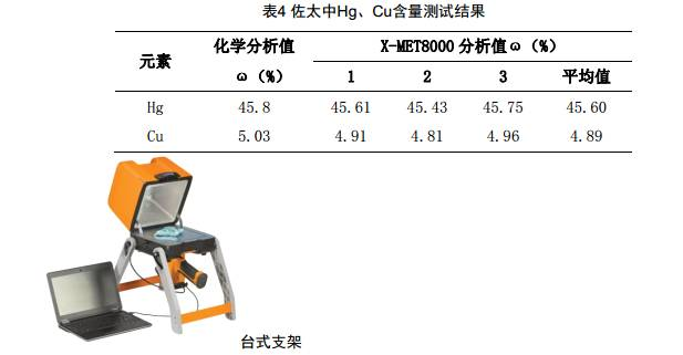以藏藥“佐太”為例,“佐太”是藏語“仁青歐曲佐珠欽木”的簡稱,又譯“佐臺” ( 衛(wèi)藏、安多語)、“佐塔” ( 康巴語) 。“佐”是煉制,“太”指灰、粉末,意思是緞燒成灰,合為水銀煅灰,也就是在金屬汞中加以多種輔助藥物,經(jīng)過洗、浸、煮等多道復雜炮制工藝,去垢、去銹、除汞毒,然后加以多種重金屬,煅炭存性而成的水銀灰藥,謂之佐太。 通常認為,藏藥“佐太”含有8種金屬和8種礦物,這8 種金屬是金、銀、紅銅、青銅、黃銅、鐵、鉛、錫,統(tǒng)稱“能持八鐵”或稱“能持八金屬”。 利用X-MET8000儀器可以完成對佐太中重金屬的分析,表4為儀器分析值和化學分析值。