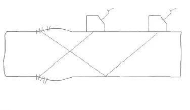 1.2.2 焊角回波在示波屏上回波位置所代表的深度和水平距離與焊角位置基本相同。一般情況下,1次波發(fā)現(xiàn)的焊角回波深度應等于或稍大于2倍母材厚度T, 焊趾裂紋和咬邊反射的深度則符合下式:1 次波時: h≤T; 2 次波時: h≤2T。但由于儀器調節(jié)誤差、檢測誤差等原因, 或由于母材厚度減薄、對口錯邊、不等厚板對接等原因, 焊角回波深度也可能小于母材厚度, 此時易與缺陷波相混淆, 應結合焊縫實際結構仔細檢測判別。