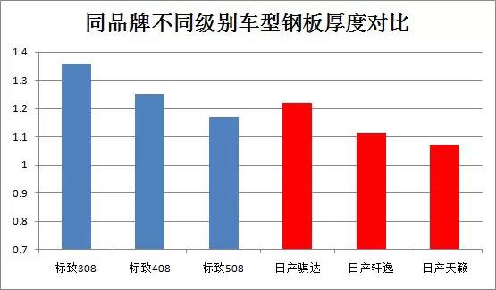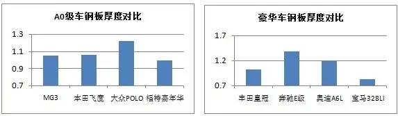 從整體來看我們可以發(fā)現(xiàn),表現(xiàn)差的并不是日系車,而恰恰是我們的自主品牌。抽樣調(diào)查的幾個自主品牌汽車鋼板厚度平均值均僅在1mm上下,而有些品牌車型的鋼板厚度平均值甚至還不到1mm。