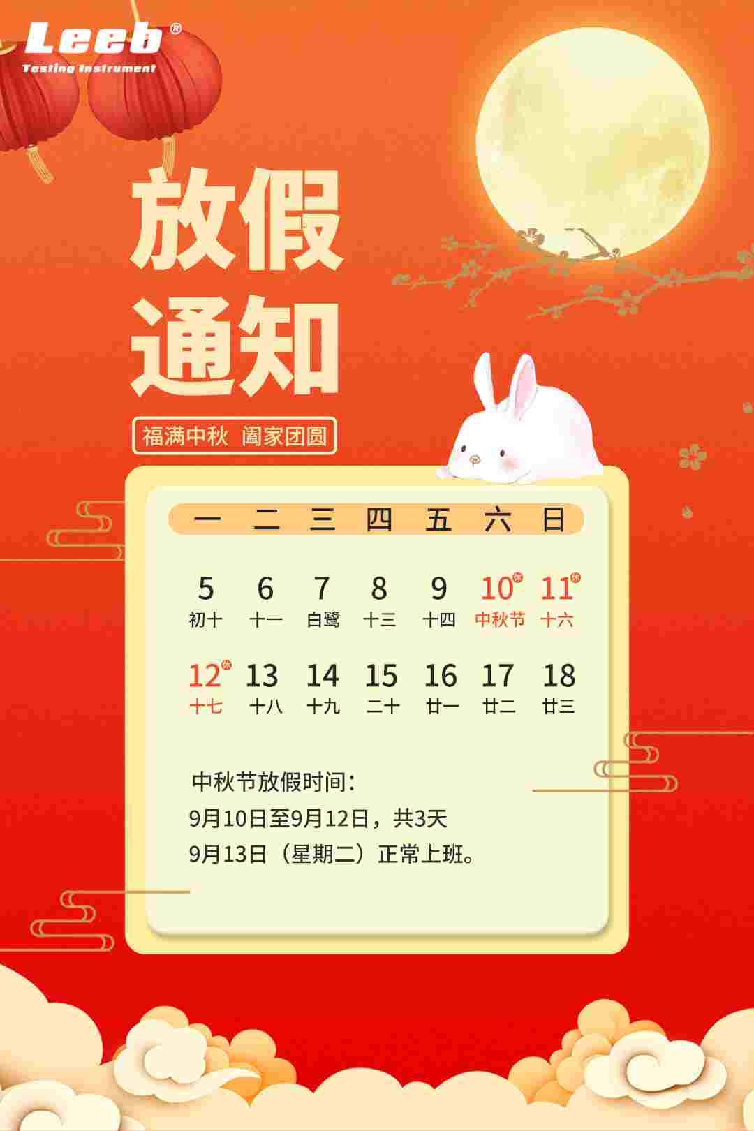 中秋節(jié)放假時(shí)間:9月10日至9月12日,共3天。9月13日(星期二)正常上班。放假期間,公司正常接單,在9月13號陸續(xù)發(fā)貨。