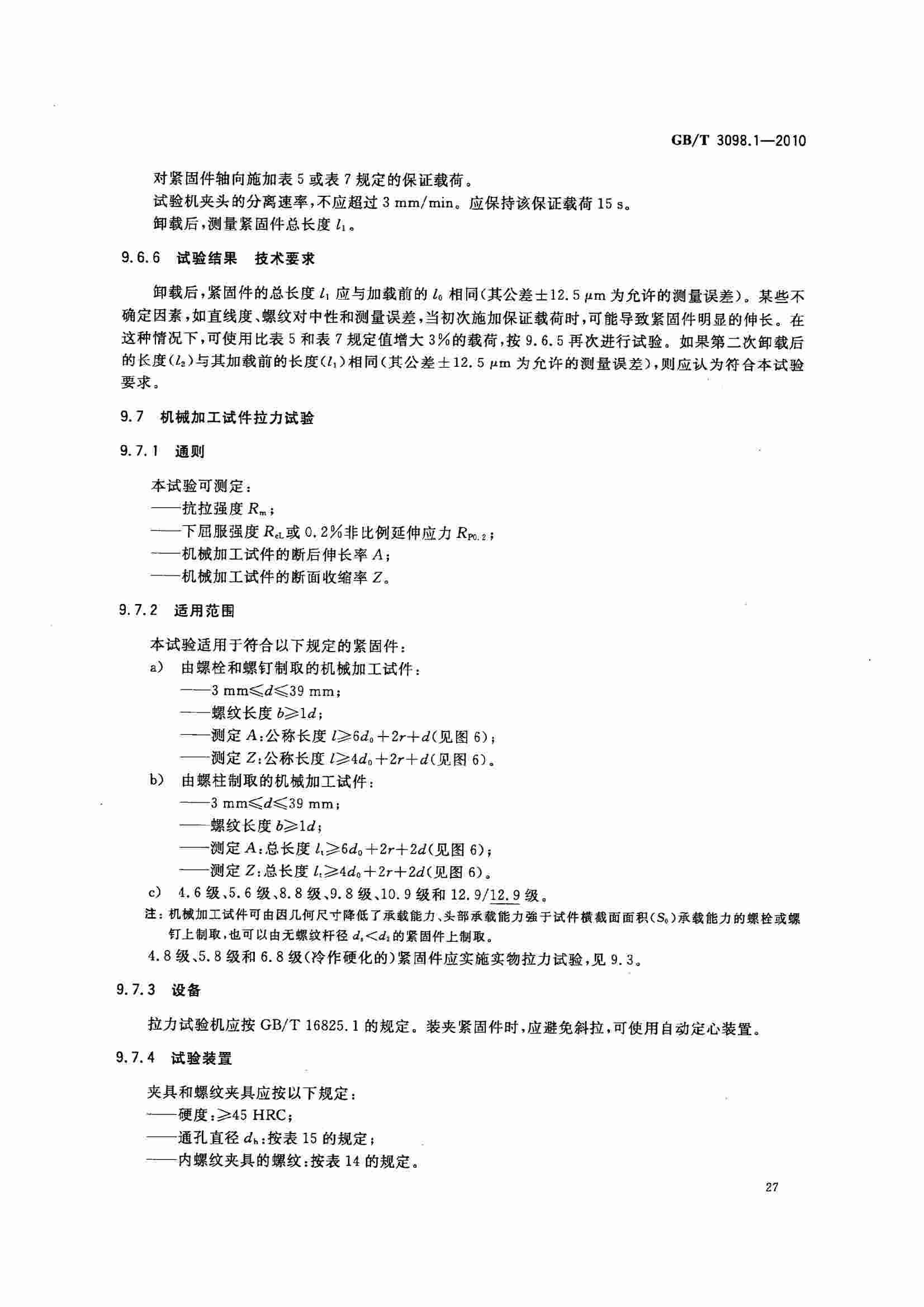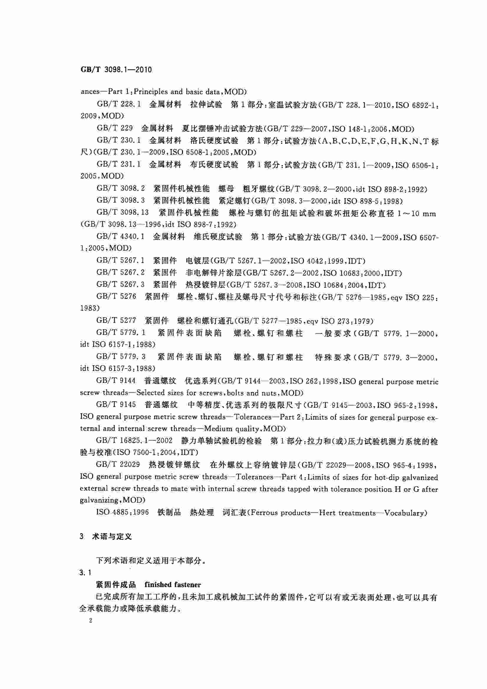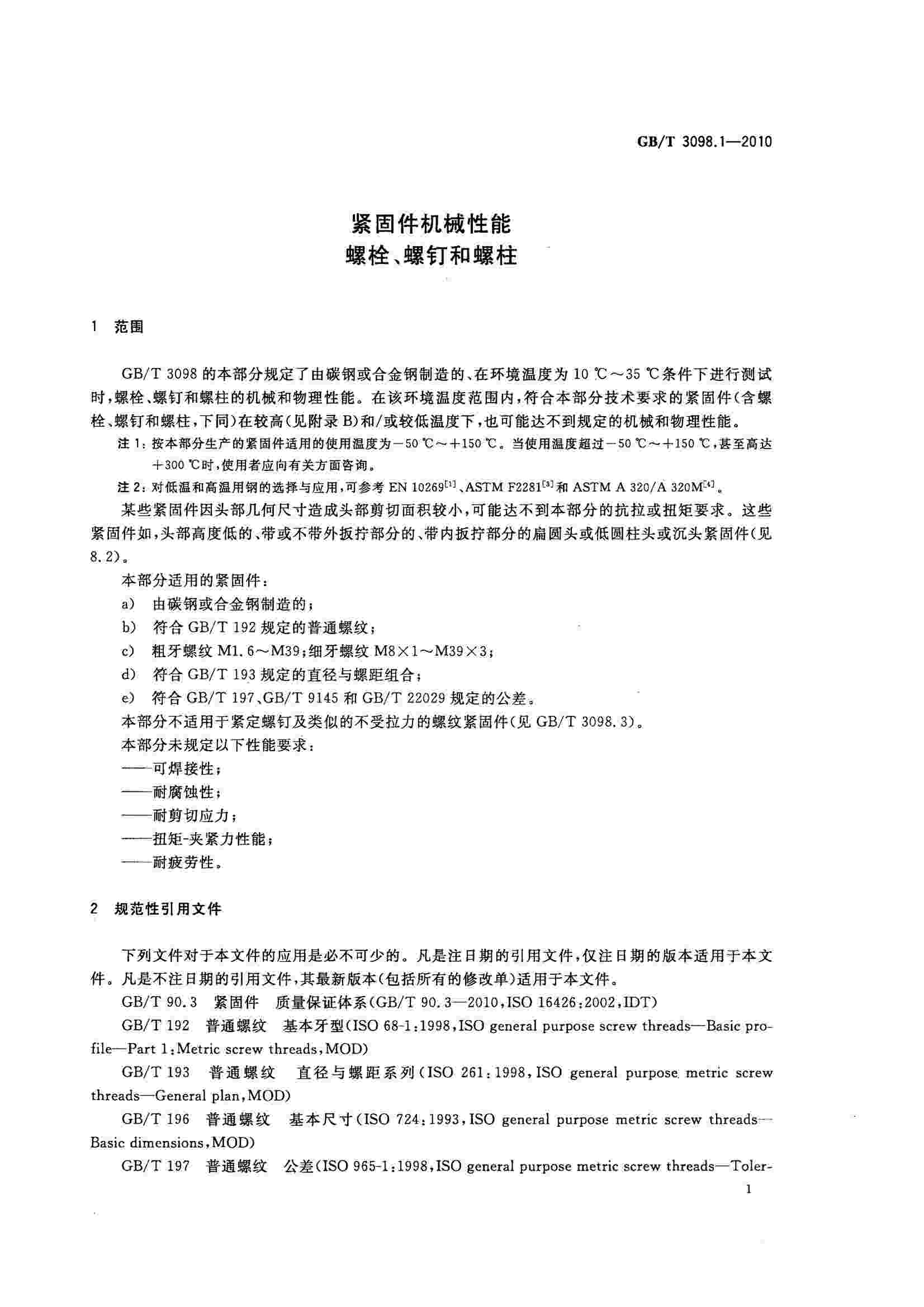 GB-T 3098.1-2010 緊固件機械性能 螺栓、螺釘和螺柱