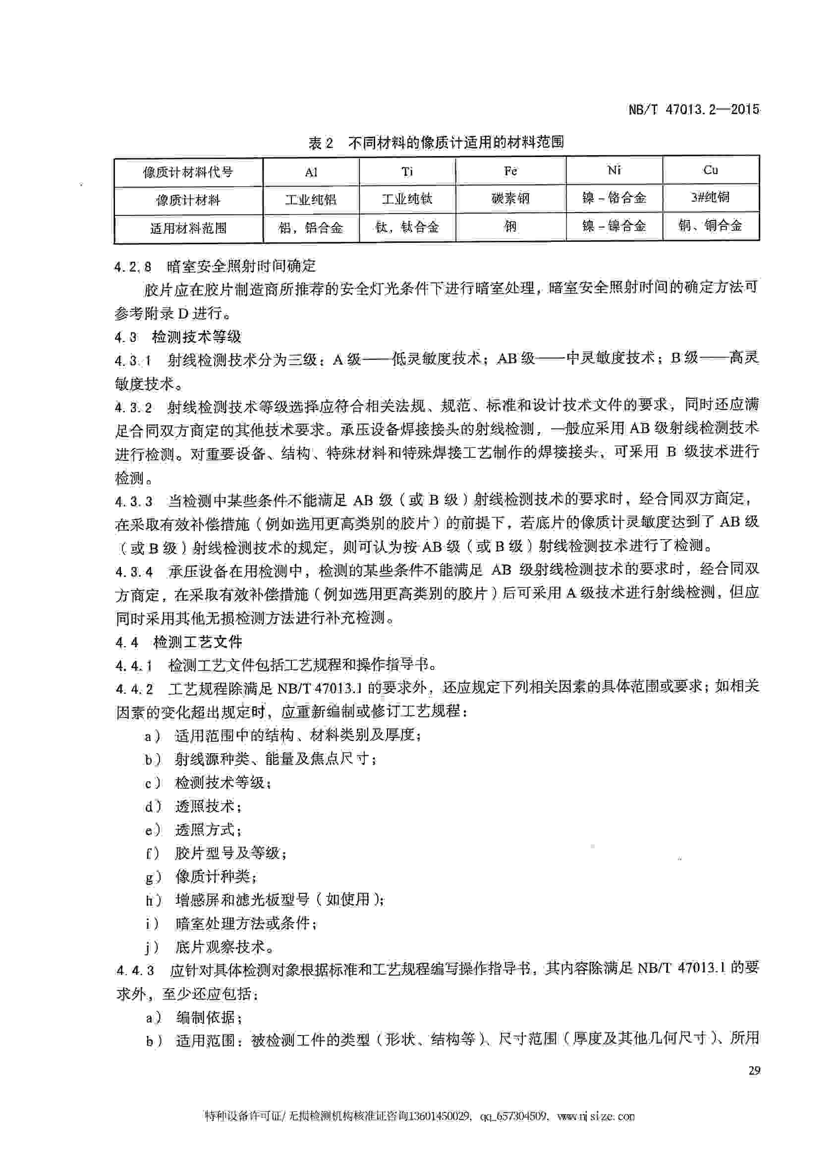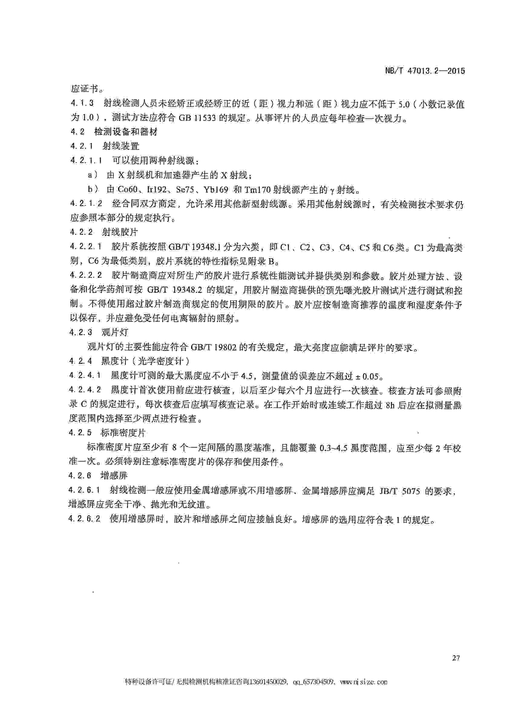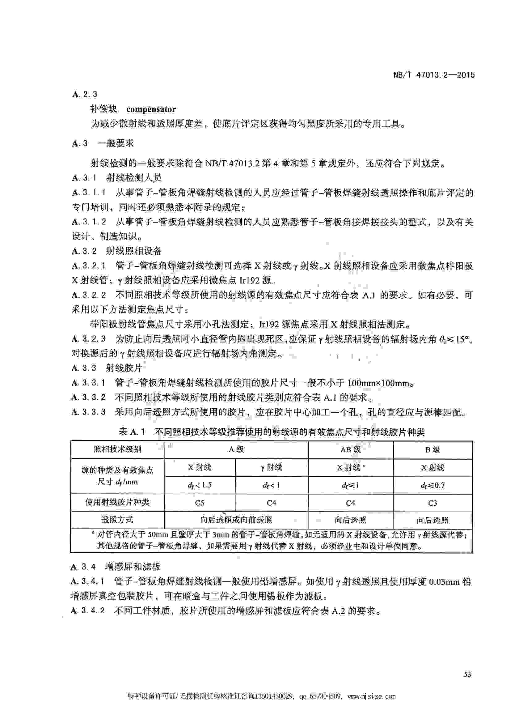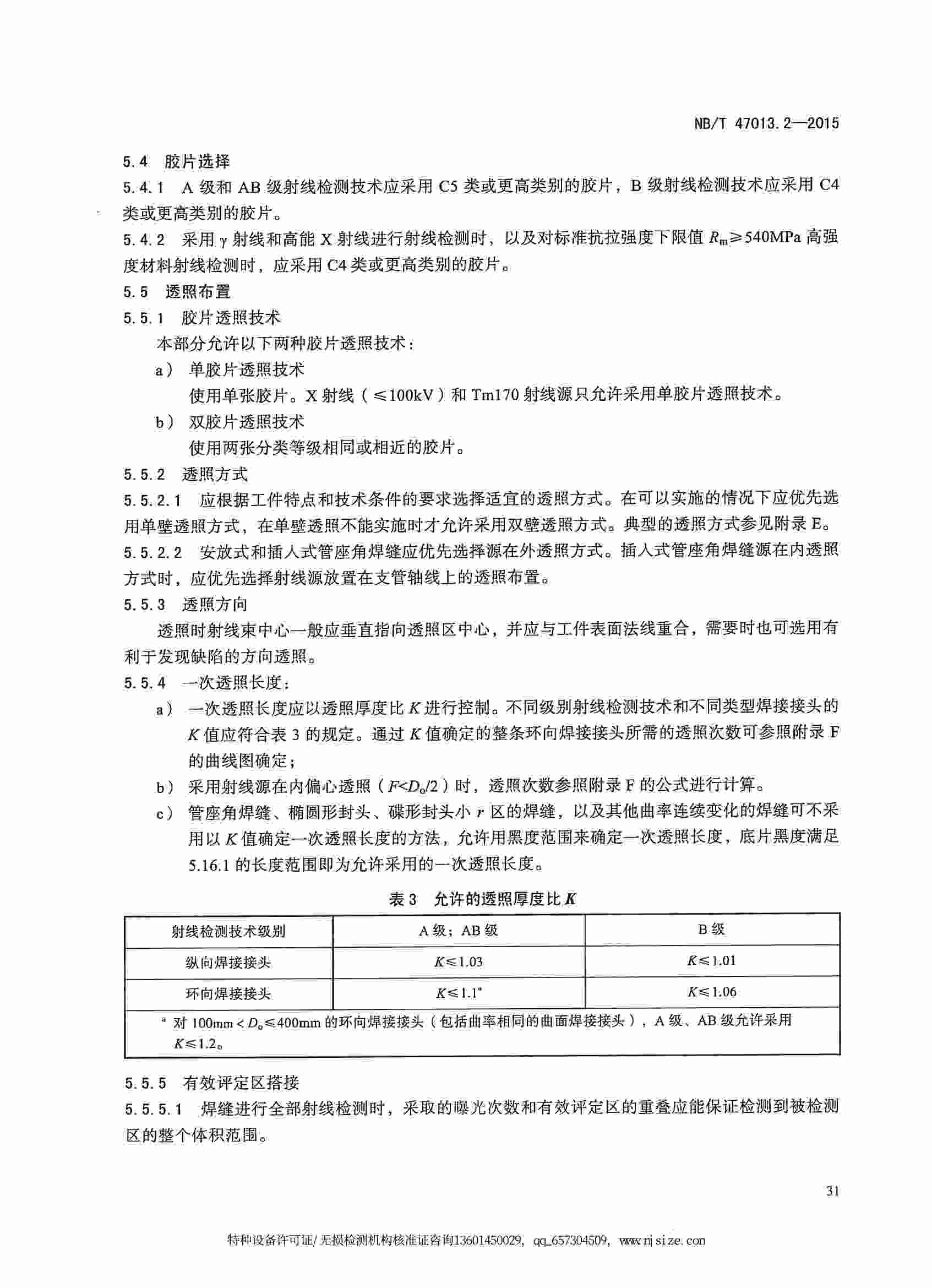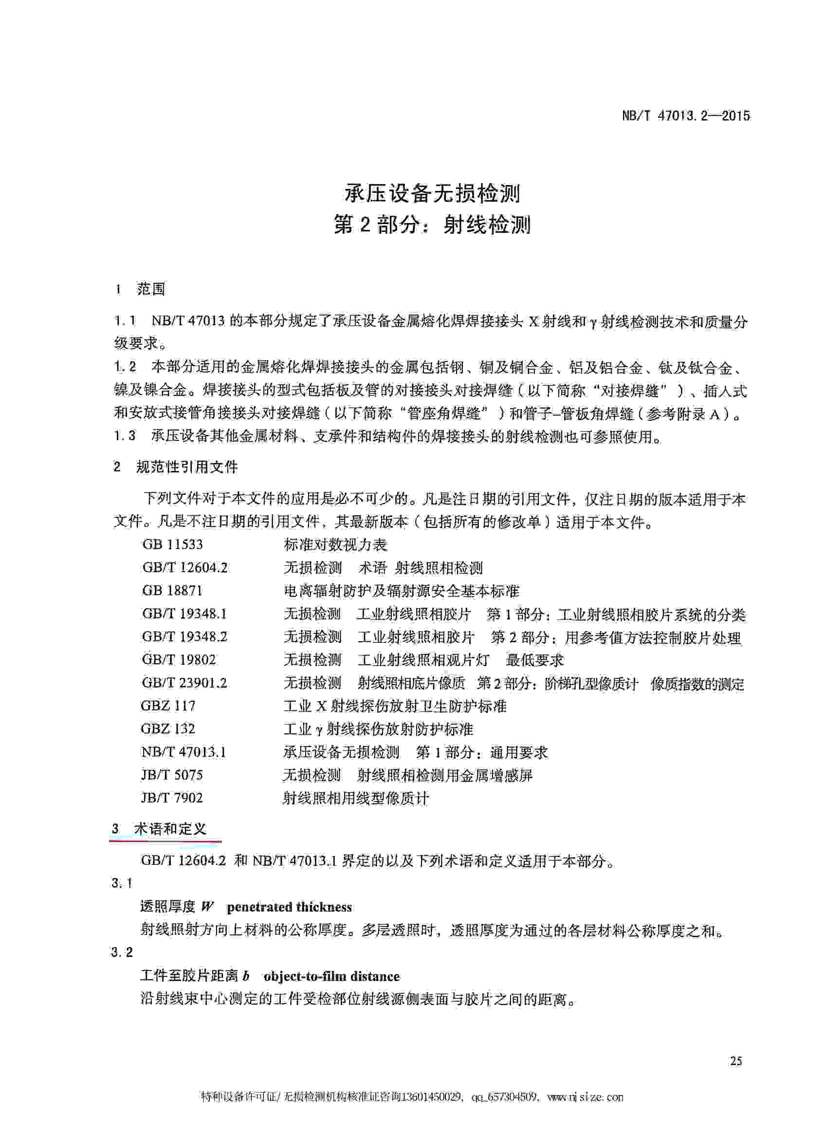 NB/T47013-2015 承壓設(shè)備無(wú)損檢測(cè) 第2部分:射線檢測(cè)