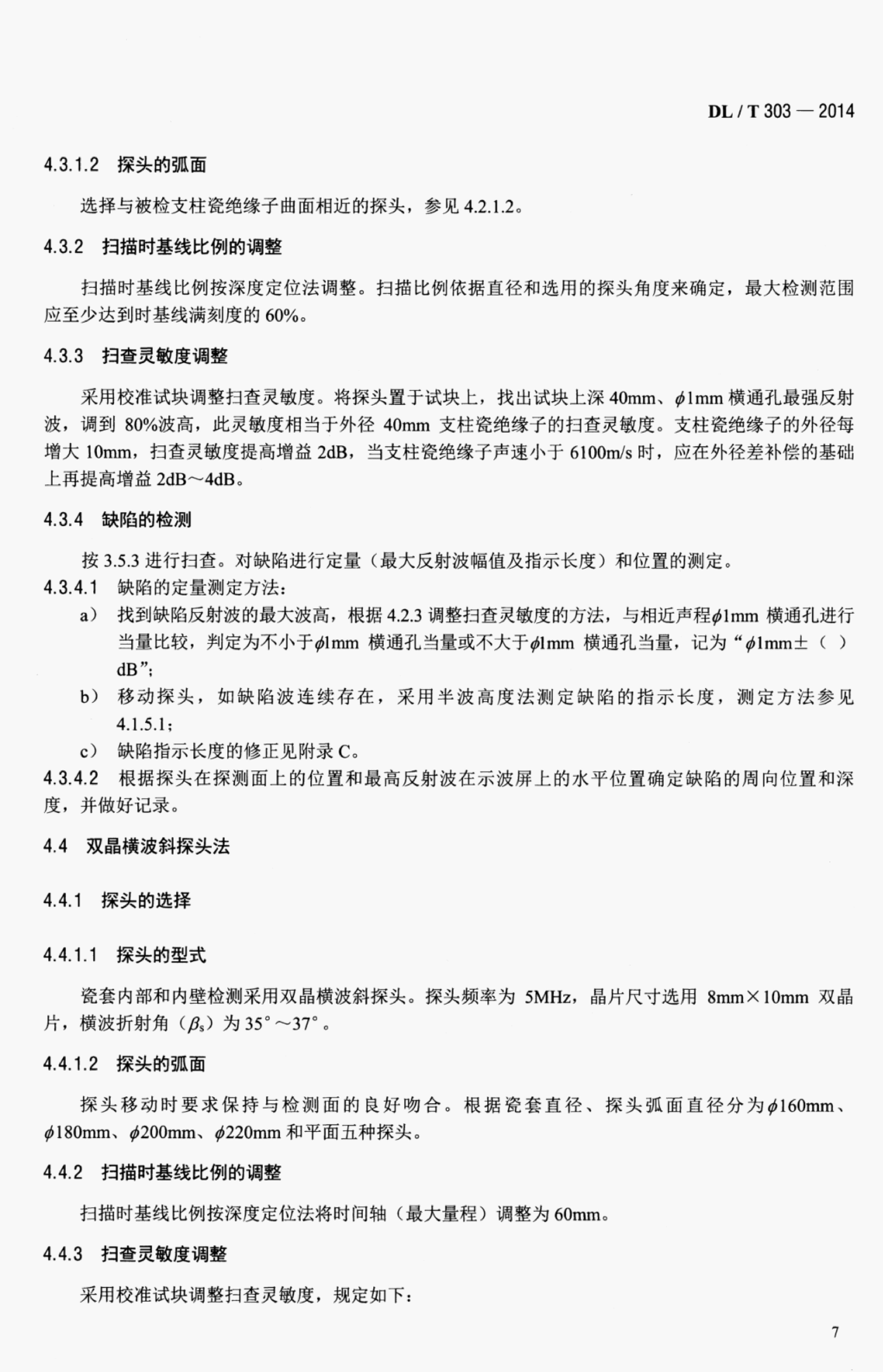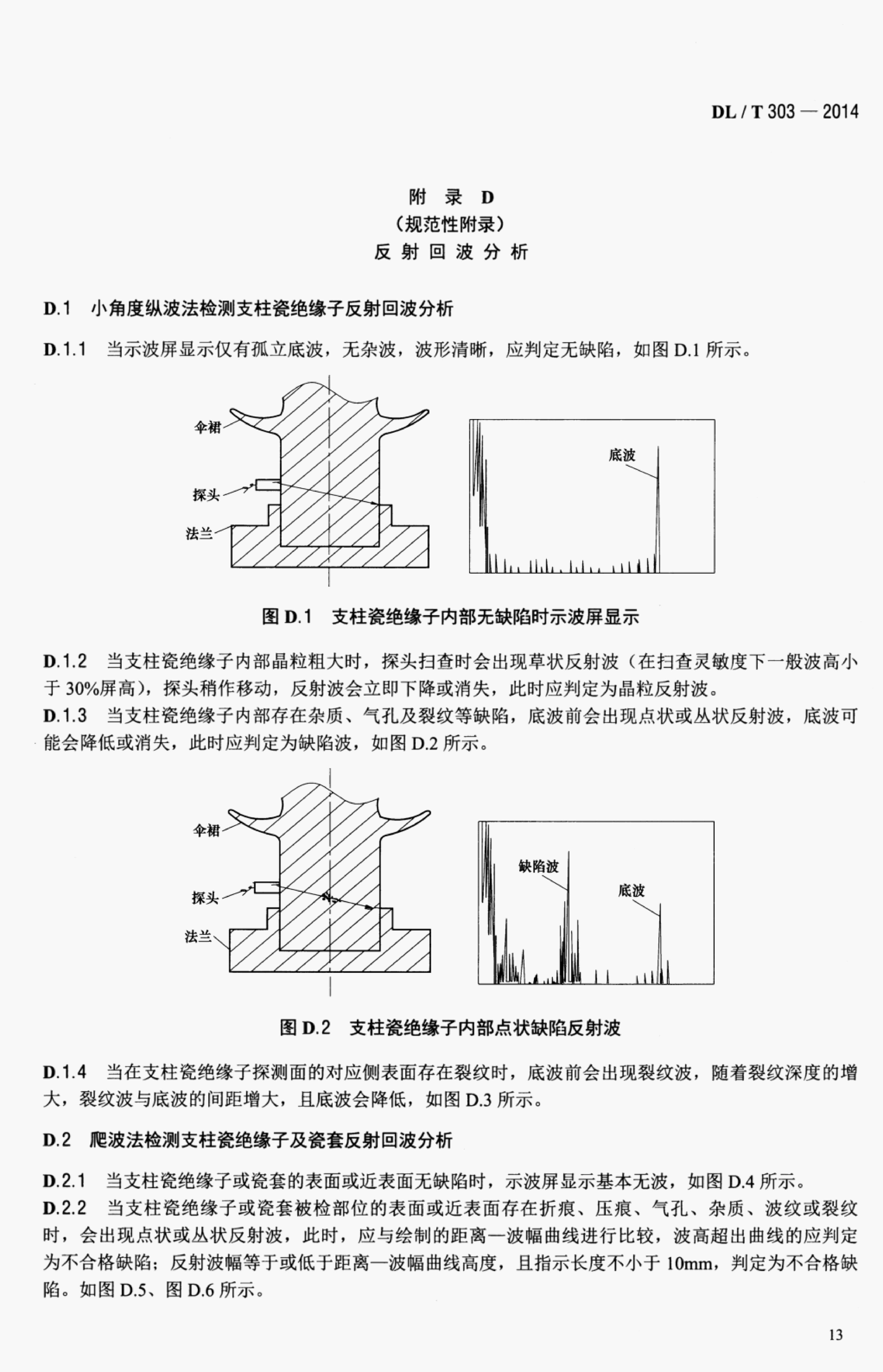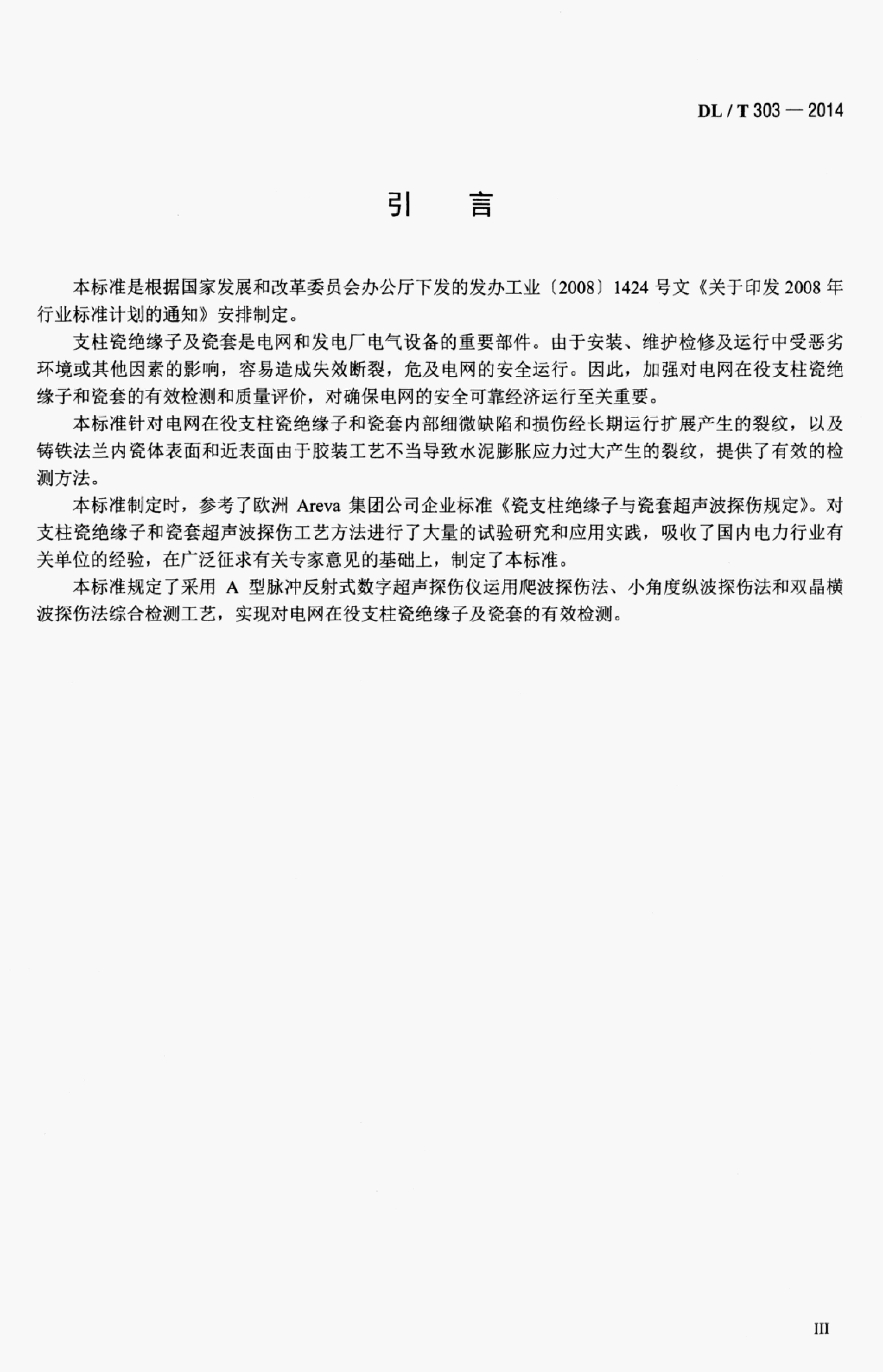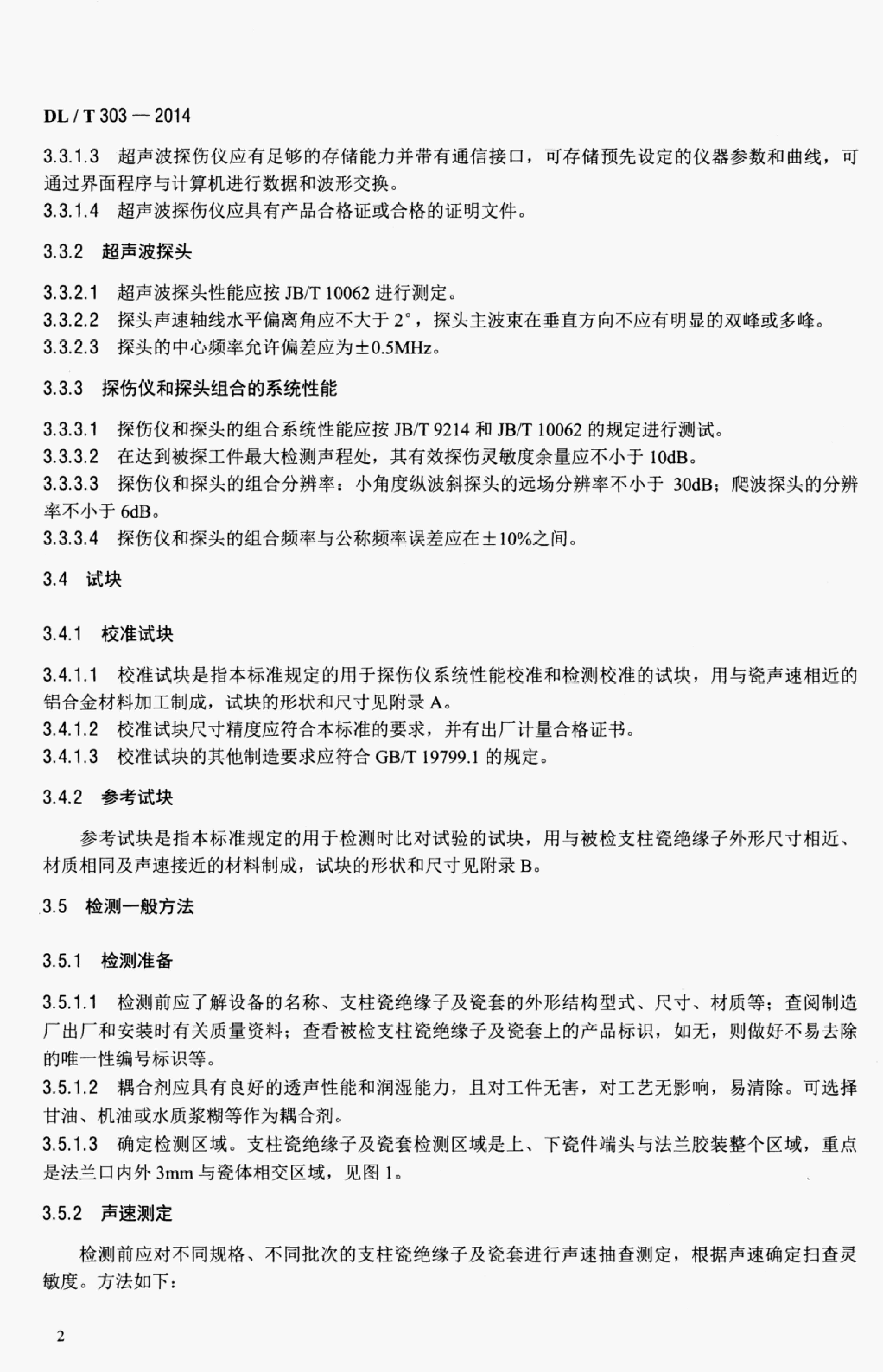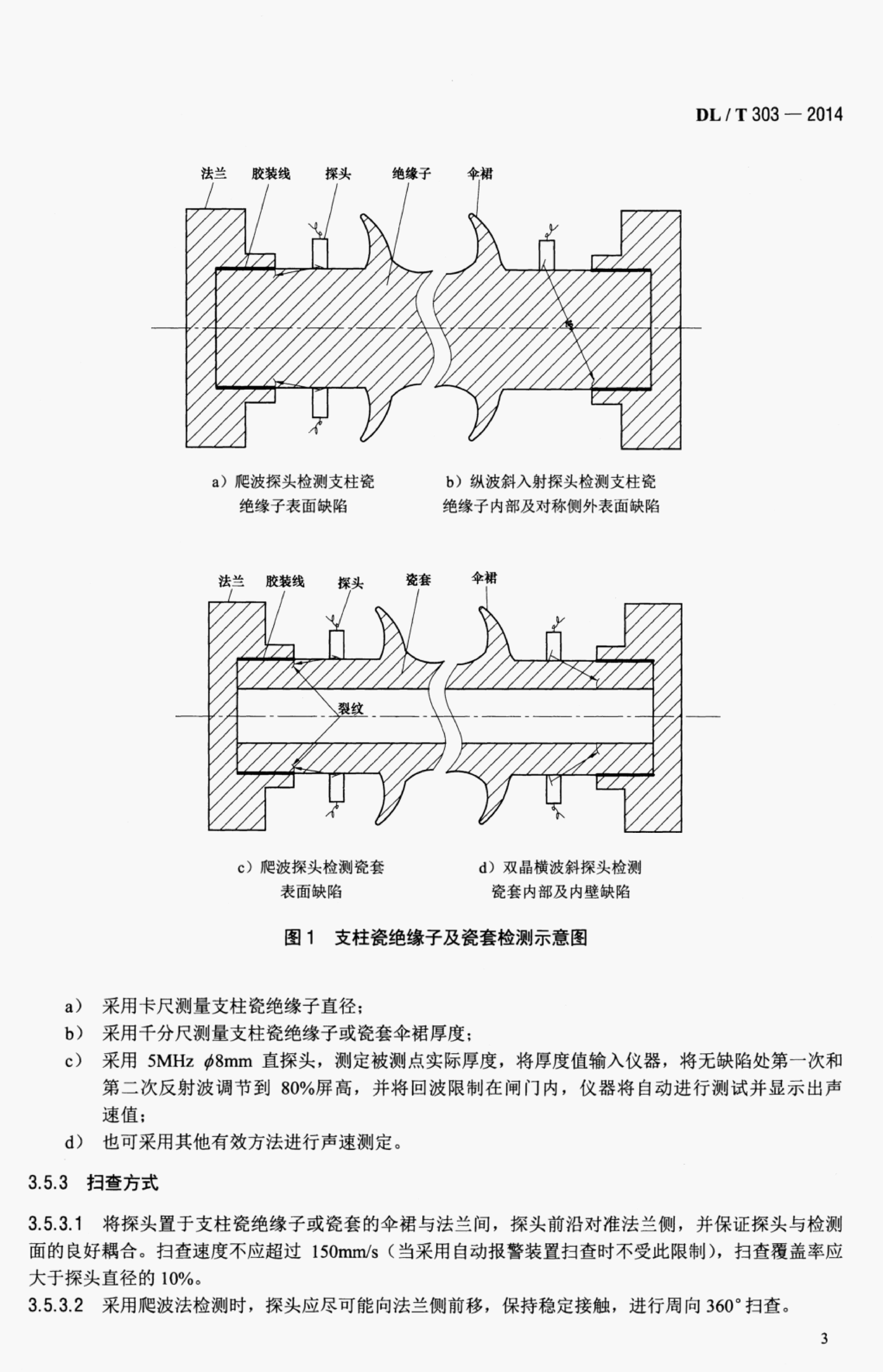 DL/T 303-2014 電網(wǎng)在役支柱 瓷絕緣子及瓷套 超聲波檢測(cè)